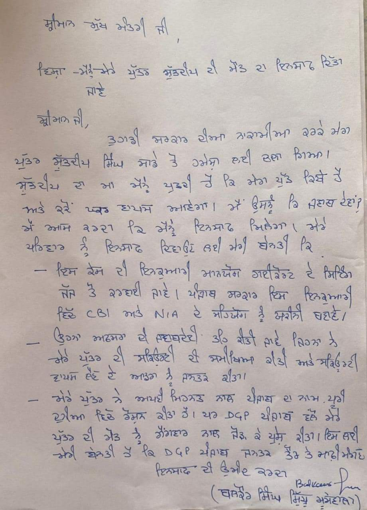 ਸਿੱਧੂ ਦੇ ਪਿਤਾ ਬਲਕੌਰ ਸਿੰਘ ਨੇ ਹੁਣ ਮੁੱਖ ਮੰਤਰੀ ਭਗਵੰਤ ਮਾਨ ਨੂੰ ਚਿੱਠੀ ਲਿਖ ਕੇ ਇਨਸਾਫ ਦੀ ਮੰਗ ਕੀਤੀ ਹੈ। ਸਿੱਧੂ ਮੂਸੇਵਾਲਾ ਨੇ ਮੁੱਖ ਮੰਤਰੀ ਭਗਵੰਤ ਸਿੰਘ ਮਾਨ ਨੂੰ ਚਿੱਠੀ ਲਿਖ ਕਿਹਾ, “ਤੁਹਾਡੀ ਸਰਕਾਰ ਦੀਆਂ ਨਾਕਾਮੀਆਂ ਕਾਰਕੇ ਮੇਰਾ ਪੁੱਤਰ ਸ਼ੁੱਭਦੀਪ ਸਿੰਘ ਸਾਡੇ ਤੋਂ ਹਮੇਸ਼ਾਂ ਲਈ ਚੱਲਾ ਗਿਆ। ਸ਼ੁੱਭਦੀਪ ਦੀ ਮਾਂ ਮੈਨੂੰ ਪੁੱਛਦੀ ਹੈ ਕਿ ਮੇਰਾ ਪੁੱਤ ਕਿੱਥੇ ਹੈ ਤੇ ਕਦੋਂ ਘਰ ਵਾਪਸ ਆਵੇਗਾ? ਮੈਂ ਉਸ ਨੂੰ ਕੀ ਜਵਾਬ ਦੇਵਾਂ?ਮੈਂ ਆਸ ਕਰਦਾ ਹਾਂ ਕਿ ਮੈਨੂੰ ਇਨਸਾਫ ਮਿਲੇਗਾ। ਮੇਰੇ ਪਰਿਵਾਰ ਨੂੰ ਇਨਸਾਫ ਦਿਵਾਉਣ ਲਈ ਮੇਰੀ ਬੇਨਤੀ ਕਿ-