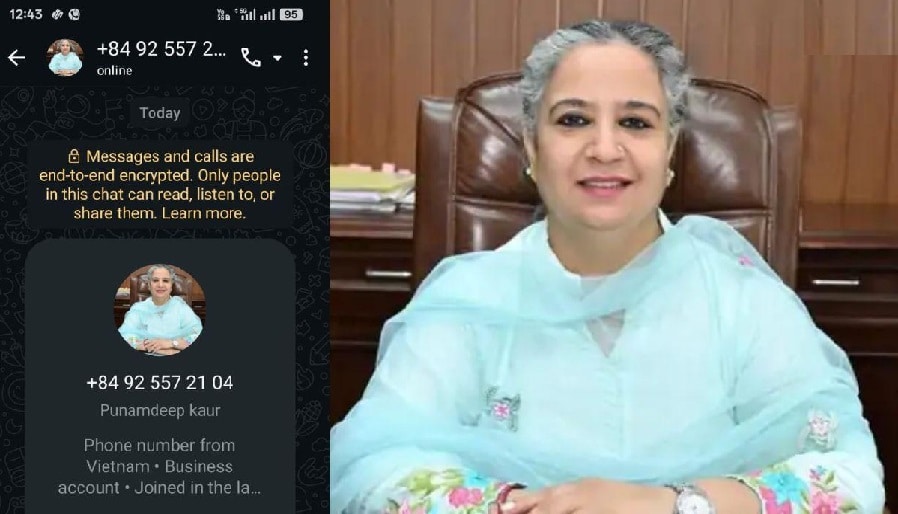 ਪੰਜਾਬ ਦੇ ਫਰੀਦਕੋਟ ਜ਼ਿਲ੍ਹੇ ਦੀ ਡਿਪਟੀ ਕਮਿਸ਼ਨਰ ਦੀ ਫੋਟੋ ਲਗਾਅ ਕੇ ਲੋਕਾਂ ਵਿਦੇਸ਼ੀ ਨੰਬਰ ਤੋਂ ਪੈਸੇ ਮੰਗਣ ਦਾ ਮਾਮਲਾ ਸਾਹਮਣੇ ਆਇਆ ਹੈ। ਮਿਲੀ ਜਾਣਕਾਰੀ ਮੁਤਾਬਕ ਫਰੀਦਕੋਟ ਦੀ ਡਿਪਟੀ ਕਮਿਸ਼ਨਰ ਪੂਨਮਦੀਪ ਕੌਰ ਦੀ ਠੱਗ ਵੱਲੋਂ ਵਿਦੇਸ਼ੀ ਨੰਬਰ 84 92557 2104 ਵਟਸਐਪ ਤੇ ਪ੍ਰੋਫਾਈਲ ਫੋਟੋ ਲਾ ਕੇ ਲੋਕਾਂ ਤੋਂ ਪੈਸੇ ਮੰਗੇ ਜਾ ਰਹੇ ਹਨ। ਜਿਹੜੇ ਨੰਬਰ ਤੋਂ ਵਟਸਐਪ ਰਾਹੀਂ ਪੈਸੇ ਮੰਗੇ ਜਾ ਰਹੇ ਹਨ,ਉਹ ਨੰਬਰ ਵੀਅਤਨਾਮ ਦਾ ਹੈ ਤੇ ਅਣਜਾਣ ਵਿਅਕਤੀ ਚੈਟ ਰਾਹੀਂ ਪੈਸੇ ਮੰਗੇ ਜਾ ਰਹੇ ਹਨ।