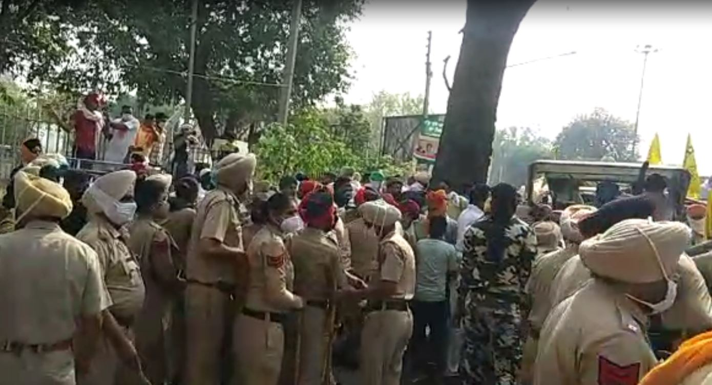 ਪਟਿਆਲਾ: ਦਿੱਲੀ-ਕੱਟੜਾ ਐਕਸਪ੍ਰੈਸ ਹਾਈਵੇਅ ਲਈ ਜ਼ਮੀਨ ਪ੍ਰਾਪਤੀ ਵਿਰੋਧੀ ਸੰਘਰਸ਼ ਕਮੇਟੀ ਦੇ ਸੱਦੇ ‘ਤੇ ਸੈਂਕੜਿਆਂ ਦੀ ਗਿਣਤੀ ‘ਚ ਕਿਸਾਨ ਟ੍ਰੈਕਟਰ ਲੈ ਕੇ ਪਟਿਆਲਾ ਪਹੁੰਚ ਗਏ। ਇਸ ਦੌਰਾਨ ਕਿਸਾਨਾਂ ਵੱਲੋਂ ਮੁੱਖ ਮੰਤਰੀ ਕੈਪਟਨ ਅਮਰਿੰਦਰ ਸਿੰਘ ਦੀ ਰਿਹਾਇਸ਼ ਦਾ ਘਿਰਾਓ ਕਰਨ ਦੀ ਕੋਸ਼ਿਸ਼ ਕੀਤੀ ਗਈ ਪਰ ਕਿਸਾਨਾਂ ਨੂੰ ਰੋਕਣ ਲਈ ਪੁਲਿਸ ਵੱਲੋਂ ਵੀ ਪੁਖ਼ਤਾ ਪ੍ਰਬੰਧ ਕੀਤੇ ਗਏ।